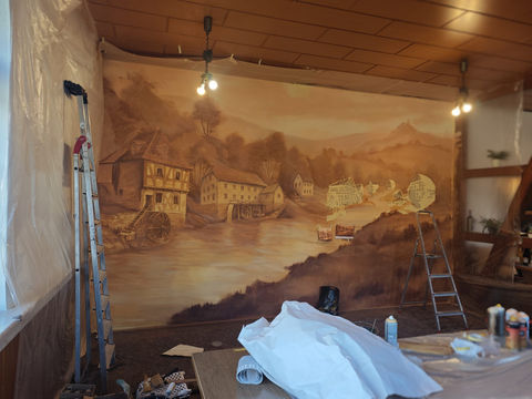#SchuellerArtDesign, #RatskellerMuehlberg, #Muehlberg, #DreiGleichen, #Thueringen, #SiebenMuehlen, #Wandmalerei, #Wandgestaltung, #Innenraumgestaltung, #KunstimRaum, #Heimatliebe, #Ortsgeschichte, #Gastronomie, #KunstundKulinarik, #Farbgestaltung, #MuralArt, #WallArt